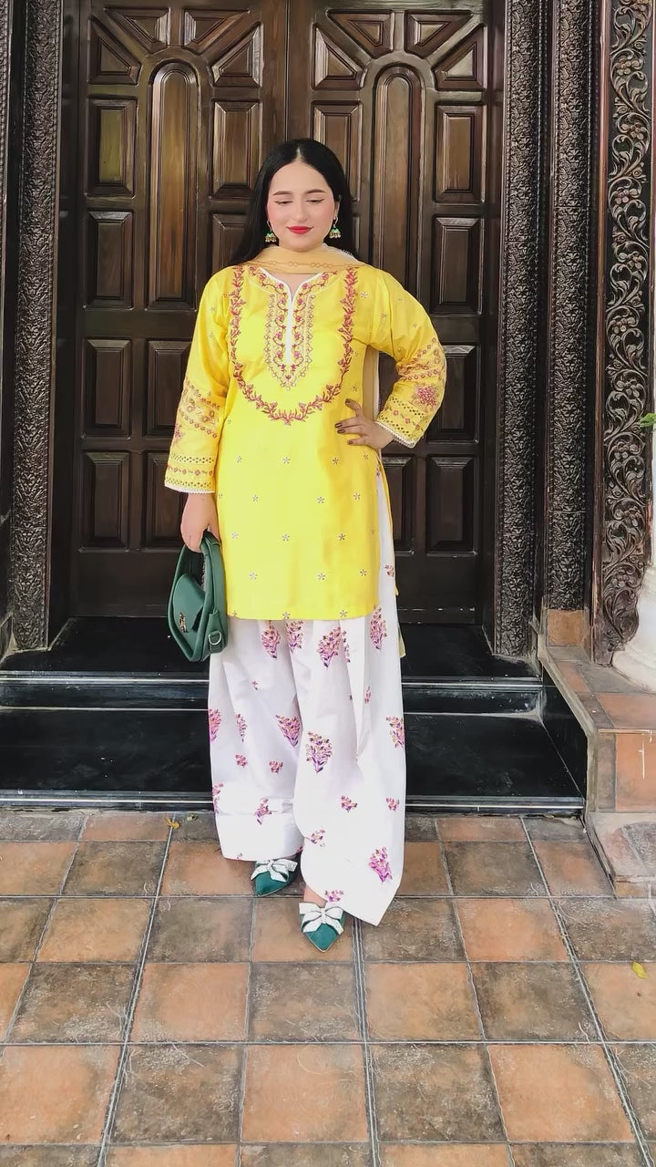 Fresh, bright, and ready to turn heads — ALLEHA collection lime yellow beauty with crisp white shalwar is here to steal your summer style moment.